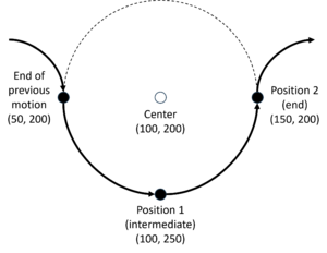 3. Position 1 (intermediate position): add radius from Y: X=100, Y=250 (you can subtract instead if you want to move in the opposite direction)